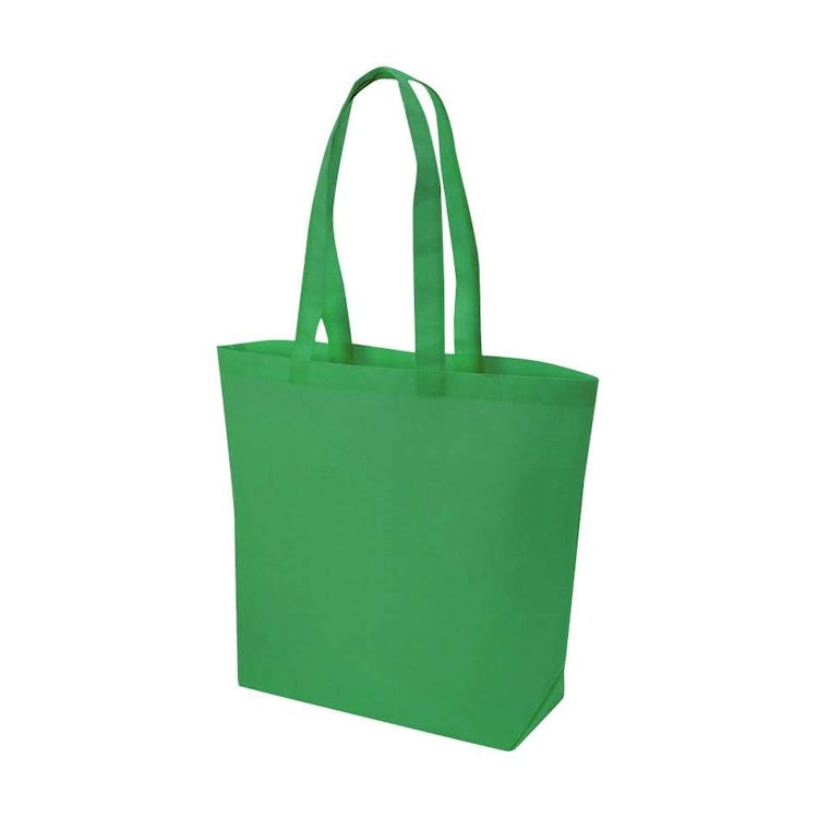 This green non-woven tote bag features dual carrying handles with a comfortable 12" drop. Made from durable 100gm polypropylene it's ideal for shopping events or giveaways.